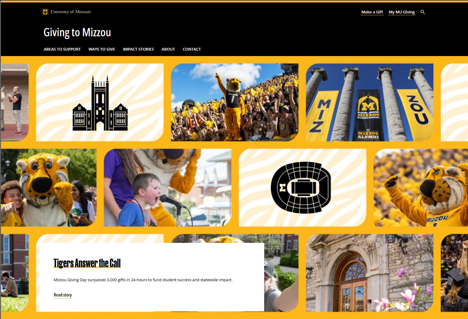 Giving to Mizzou - A new WordPress site based on the Mizzou theme and updated branding elements.