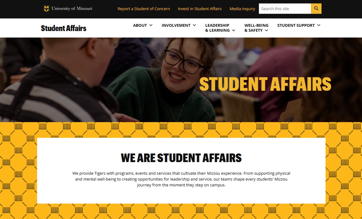 Student Affairs - A new WordPress site using the Mizzou updated brand and theme.